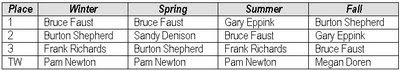 Welcome to the 2009 officers: Pam Newton (Fleet Captain), Bruce Faust (Secretary/Treasurer), Gary Eppink (Fleet Liaison), and Bob Van Buren (Race Chairman)