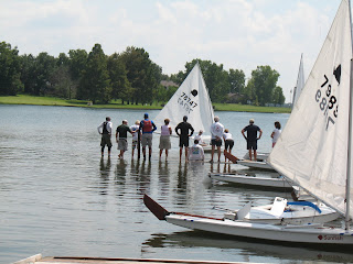 Eduardo Cordero, 8 time Sunfish world champion, flew in and spent the weekend at Rush Creek with a small group of sailors teaching them to walk on water (see picture). Tony Collins, who will be sailing with the Butterflys this winter on his Sunfish, coordinated with Eduardo to put on an intimate sailing clinic for a few lucky sailors. Shaun, Doug, me and one or two others bailed on sailing in CSC's Laser Regatta in order to take advantage of the rare opportunity to learn from Eduardo.