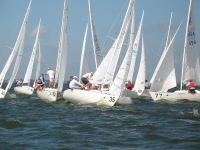 The sailing was the usual stuff … a couple of fronts rolled through so it drifted, it built, it blew, it rained, and it drifted again. There were good legs and there were bad legs and in the end we finished about mid fleet-ish. In the J/22 fleet, a mid fleet finish is a darn fine performance, especially for newbies who were 60 pounds light. Bowman’s team was 120 pounds light and we found ourselves crossing behind them a couple of times (you can imagine Tommy’s reaction). Here are some links to daily videos of the racing and pictures which rival John Noeding’s quality.