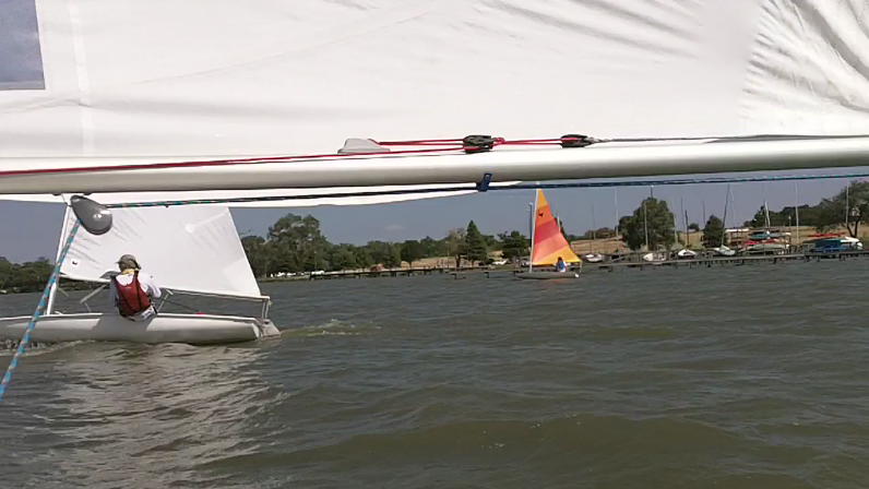 Originally, I was going to do some practicing on the Laser and Doug was going to sail the new Butterfly but with the Laser out of commission that left us both competing for the Butterfly. I tried to put Doug on Cathy’s boat but she wasn’t having it so I had to take him with me.