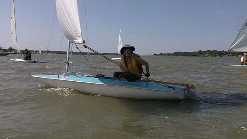 Doug then took Amber’s sister, Shannon, for a spin in the Laser. She enjoyed the ride but when they returned to the docks the rudder bumped the bottom which messed something up so we retired the Laser for the day and got Doug’s new Butterfly out for its first sail in the third race.