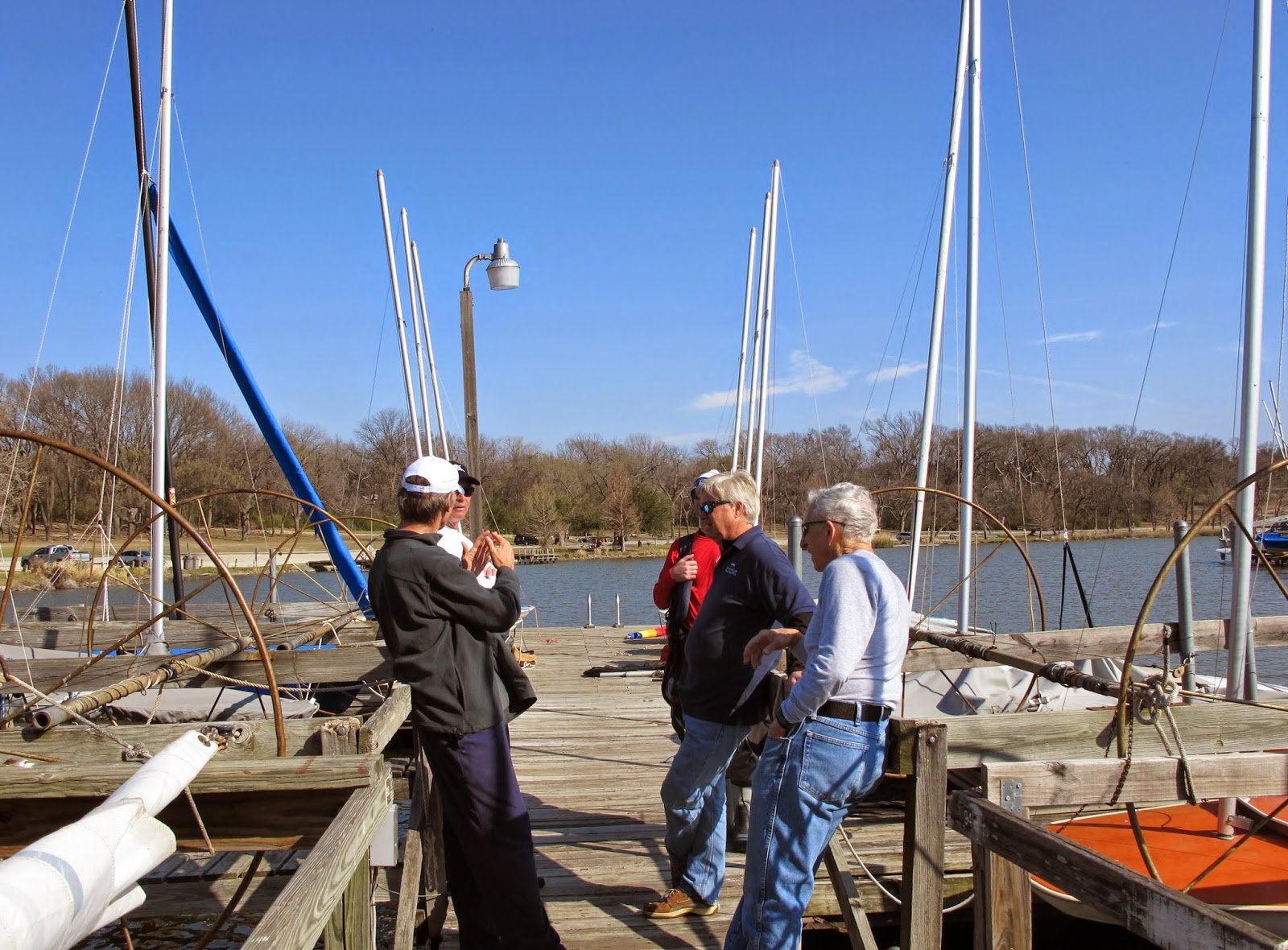 | Doug P. describing something after sailing. So nice and warm on the docks we didn't want to leave. Photo by Jackie. |