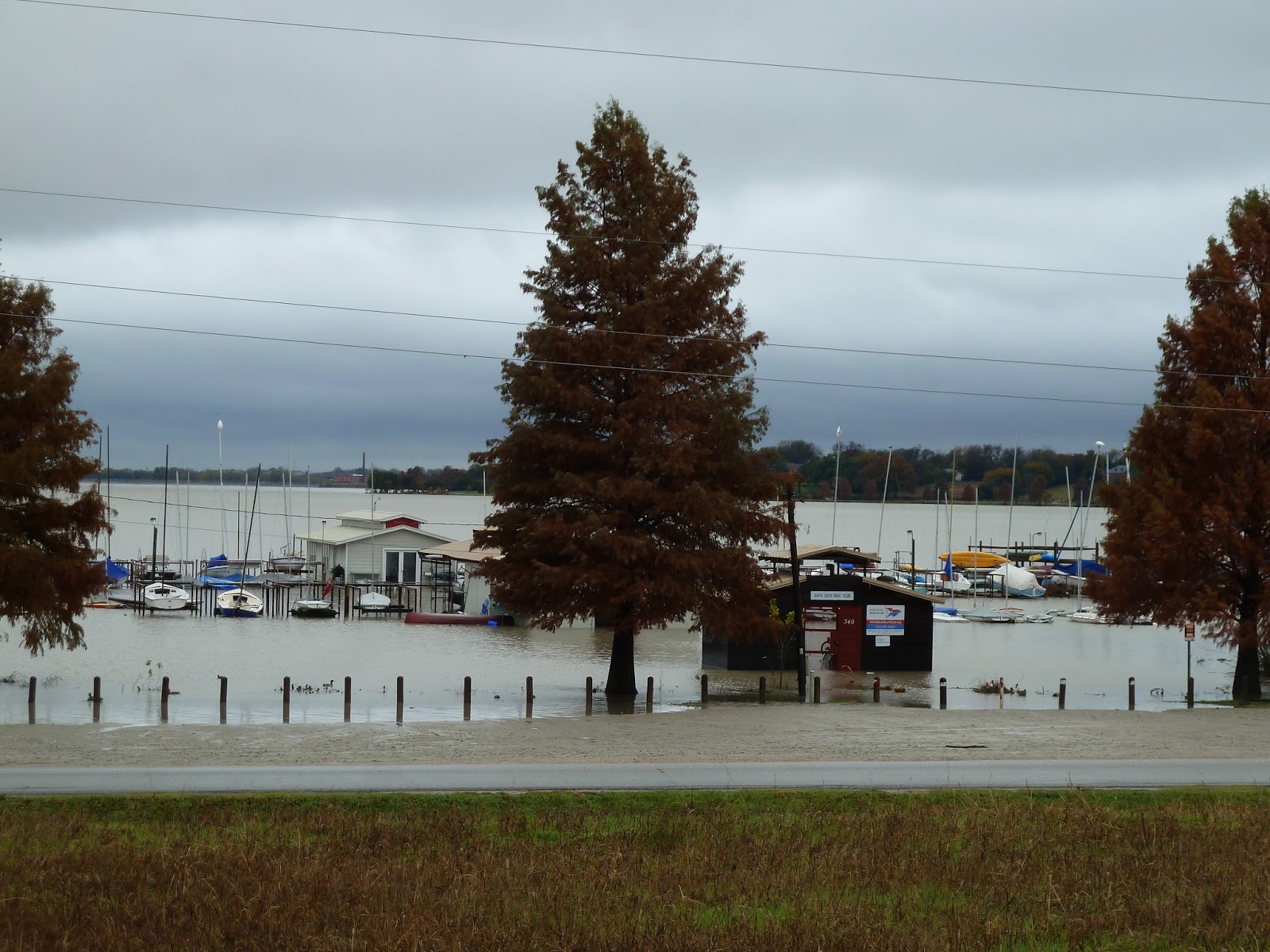 It's been a record year for flooding at the White Rock lake boat clubs (4 times), due to North Texas's wettest year on record. Surely this will be the last flood of the year until spring rolls around. Earlier this year we had the wettest May in Dallas-Ft. Worth history. 35 trillion gallons - enough to cover all of Texas in 8 inches of water. It's nice to see the lake fill up . . . but this is too much of a good thing.
