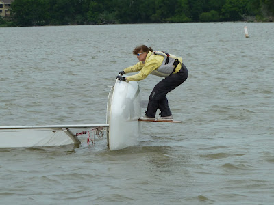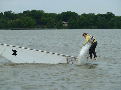 This blog is not about Saturday sailing. Sailboat racing is always fantastic just to be out on the lake with a great bunch of people and race committee out there taking care of us. Instead this blog is more about the art of capsizing and recovery. Unfortunately I am quite good at capsizing . . . but can't say too much about recovery. So, I'm inviting some comments of those who are better at recovery.