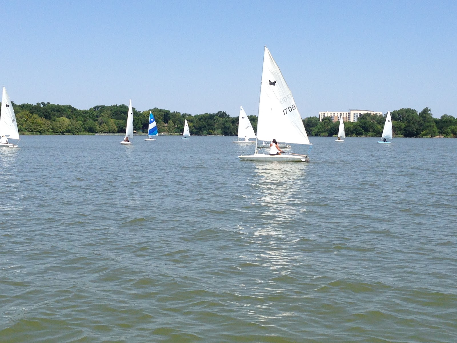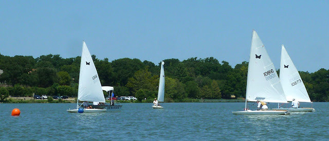 Joyce in 2nd place on the 1st leg of the 2nd race. Way to go! We had another beautiful summer day with winds from the SSW at 5-10 mph with ten Butterfly sailors for at least some of the races. It was a nice day to sail and definitely cooler on the lake. Photo and video by Doug P. (Thanks!)