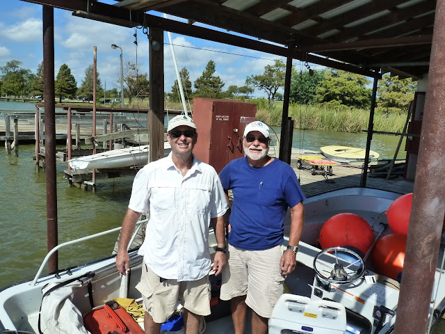 This would have been the first Saturday that the Butterflys returned to regular racing. However, that was not to be because we received an e-mail on Friday saying that all the boats on the west pad side needed to be moved elsewhere for the next month in order to allow that area to be rebuilt. By the time I arrived around 9:15, the committee boat was loaded and ready to go and both Jim and Larry were helping to move boats - along with Butterflyers John K., Doug G., Ken, and Miles. It was a little chaotic!