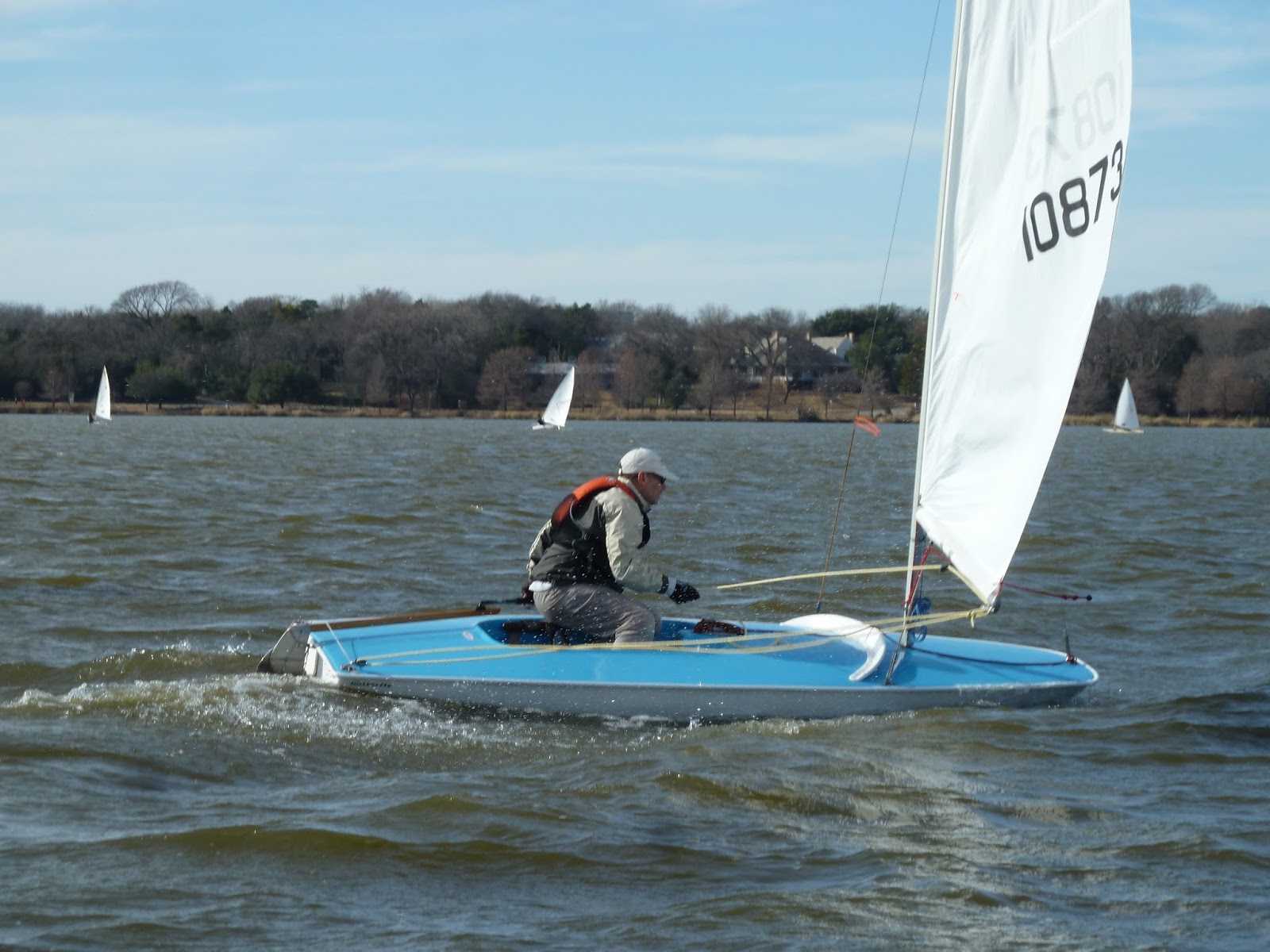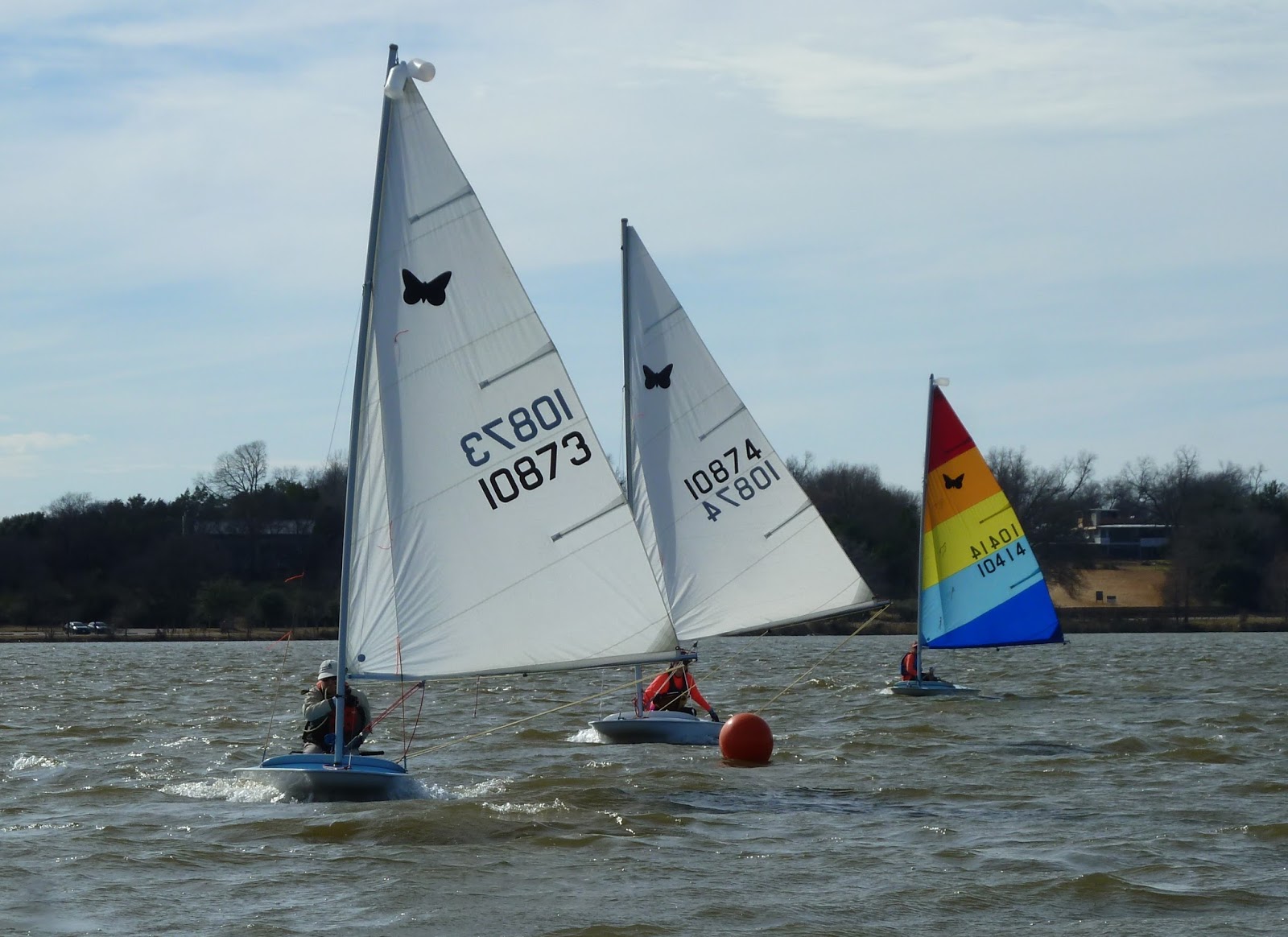 Out of 6 Butterflys, Paul took 1st in all 3 races, but in that last race Marshall was closing in rapidly. Marshall got 2nd in 2 races, and Nancy got 2nd in the 1st race. I managed 3rd in all 3 races but had to do a circle on the starting line in the 3rd race after colliding with the committee boat. Ouch. That was fairly embarrassing.