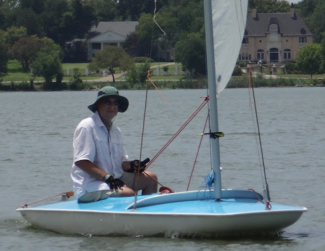 It was a hot one today and there wasn't much wind to found on the race course. Doug and I had race duty and at the beginning of the first race, he asked me which way I would go if I were racing. My reply was, "home." Doug set a hopeful course that turned out to be pure torture for the racers even though we cut it short. A break for lunch only brought us a hint of more wind and we set some short courses to be on the safe side and make up for the brutal first race.