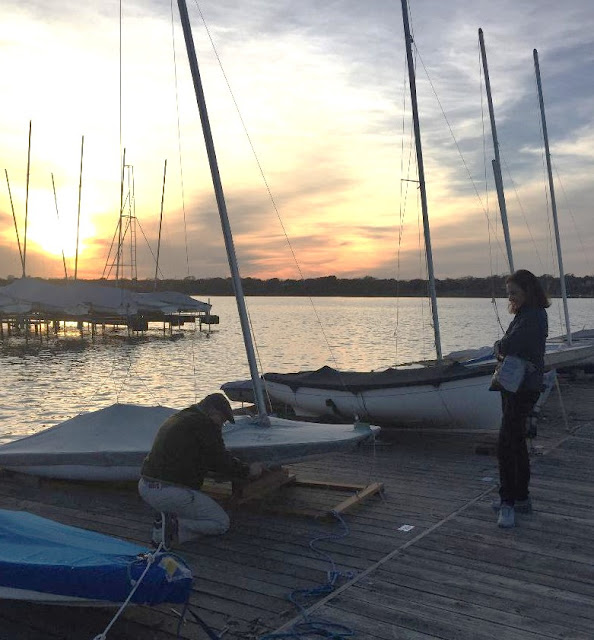 Monica bought Burton's old boat and was all set to give it a try but could not get her sail up. Turned out that her shreave at the top of the mast needed to be replaced. Pam had written a blog about it that described finding the part at Lowe's - a lot cheaper than ordering it. Burton and Nancy came to the rescue and helped replace it so will be fun to see if Monica will make it out this Saturday. Butterflyers to the rescue!