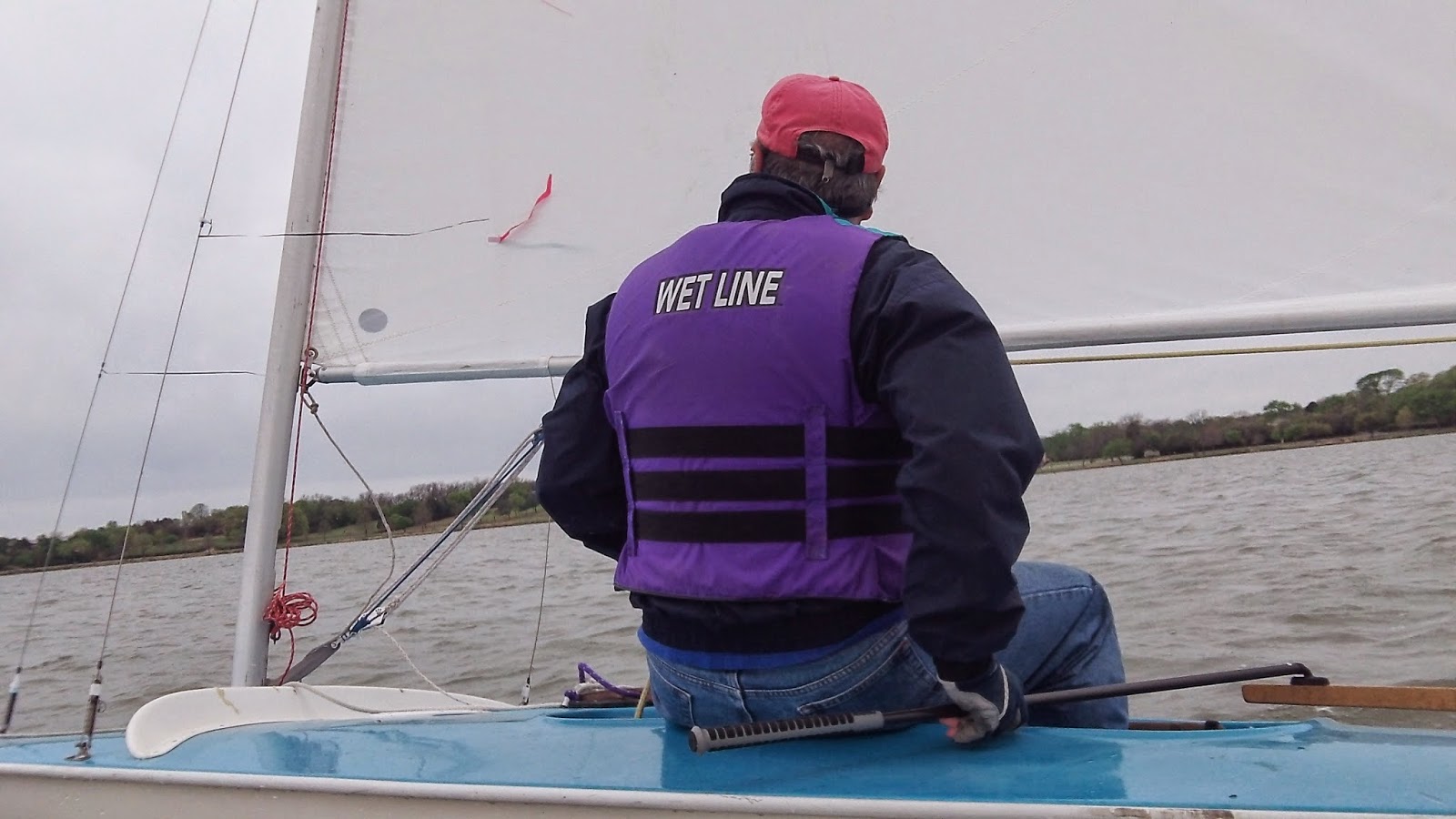 At the end of racing, I noticed a boat went over. Someone said it was Larry. That's a two times in a row now. As I was browsing through the pictures, I believe I may have stumbled across the problem. Someone grab some duct tape next time you see him and cover up "wet" on his life jacket. The Universe seems to be having a little fun with him.