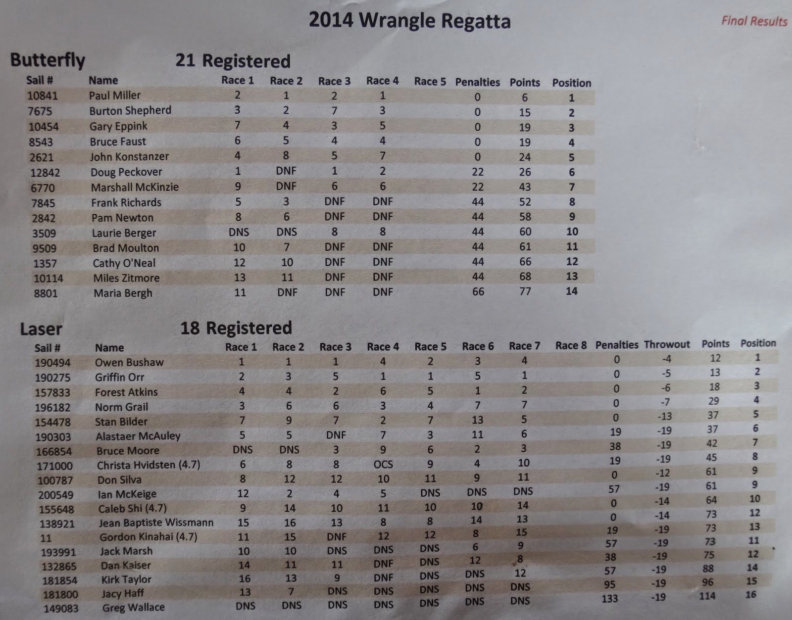 believe we had 22 Butterflys and maybe 15 Lasers registered. I know Bowman had