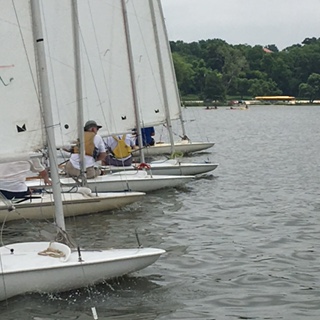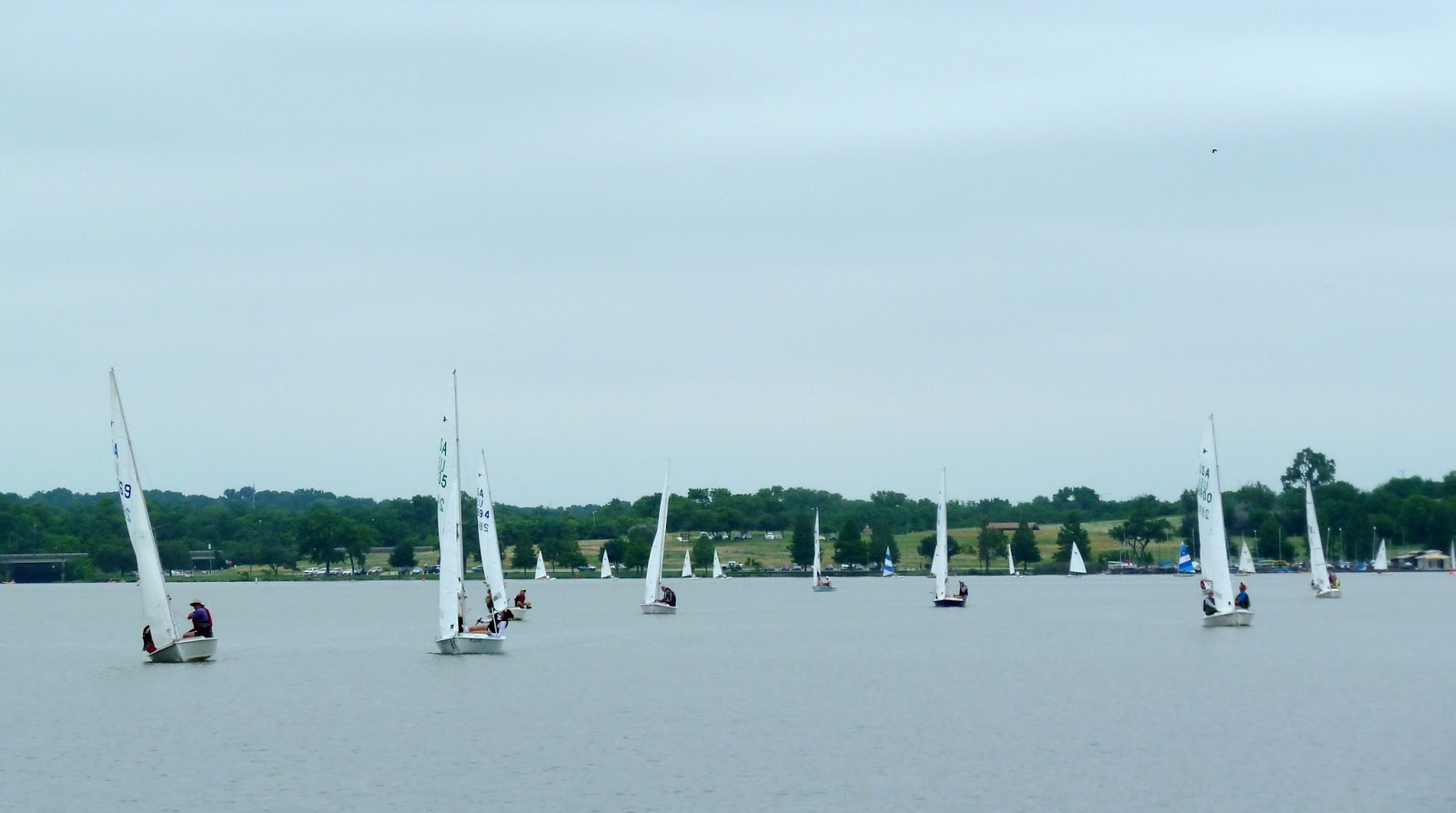 White Rock Lake - full of boats! Snipes heading out to the race course with Butterflys racing in the background.