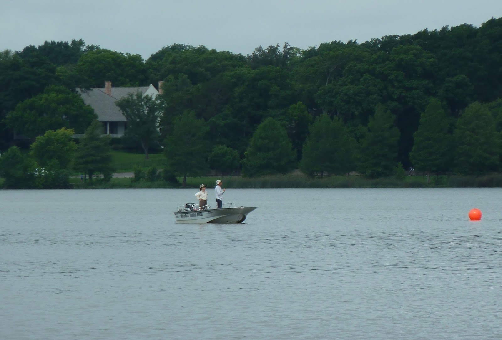 | Bowman and Frank on the committee boat setting the course - not that easy to do in light air. Thank you race committee! |
