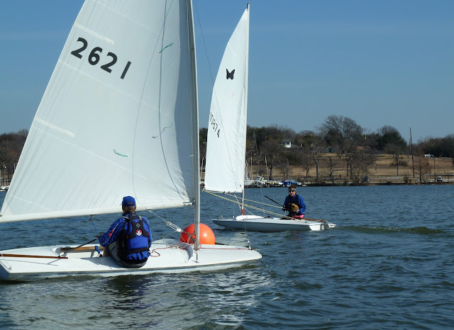 Ended up being even warmer - more like mid-60s. Our kind of January! The wind was steady from the southeast with a few puffs up to 15 mph or so. We had a different winner for each race.
