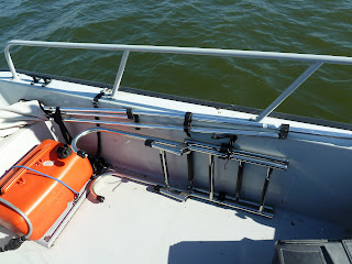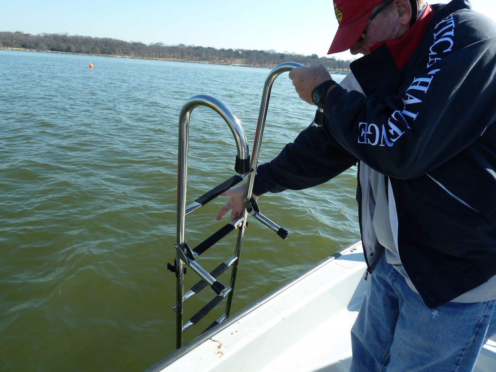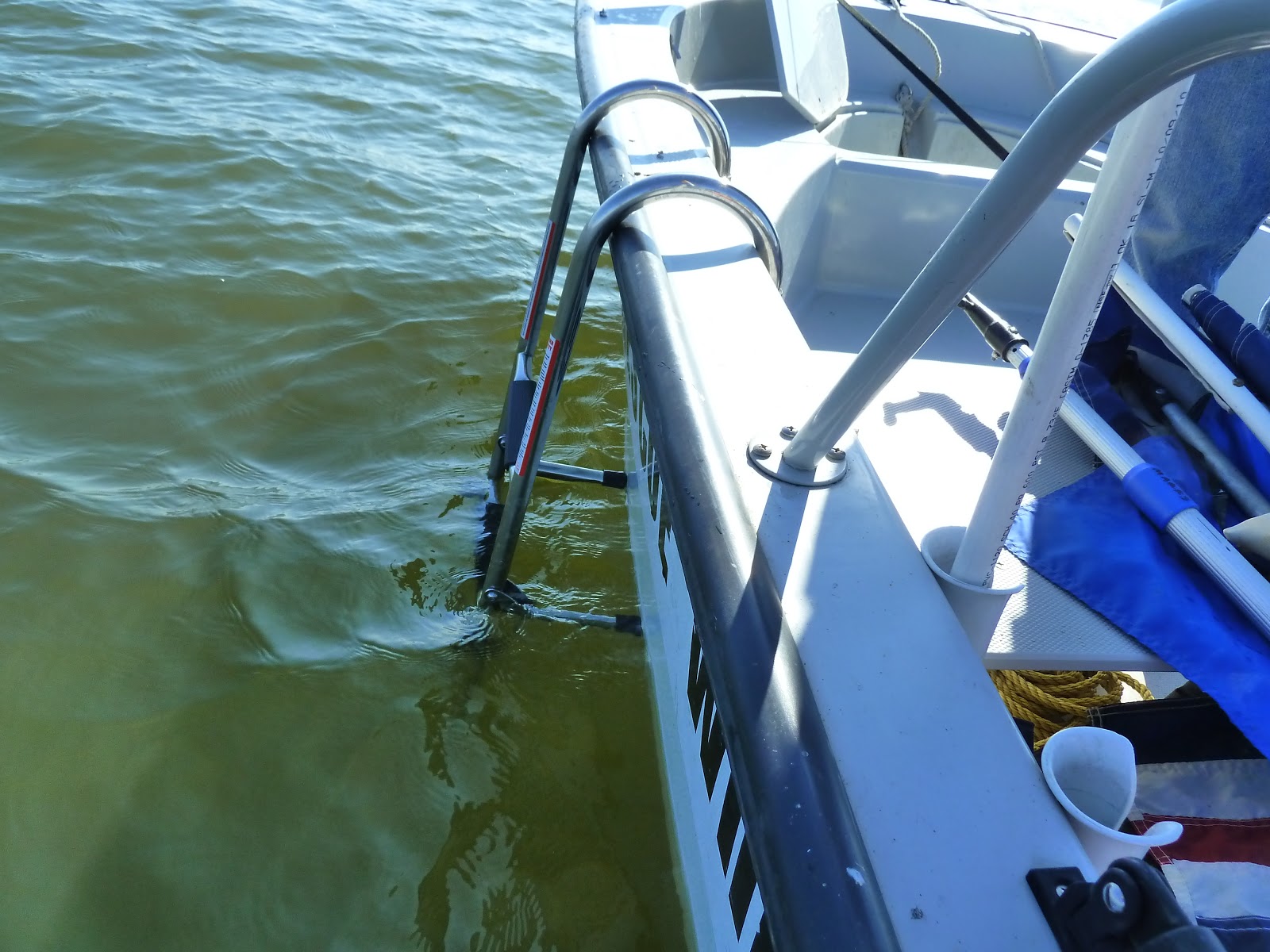 We have an improvement in case someone does end up in the water. Jim arranged for a new ladder and it is very nice. I think Marshall told me he was the first to try it out and it worked quite well. Also there is a lot of new labeling with some helpful hints. AND someone (Larry?) replaced all the lines for the buoys so they will not float away leaving the weights behind. Thank you!